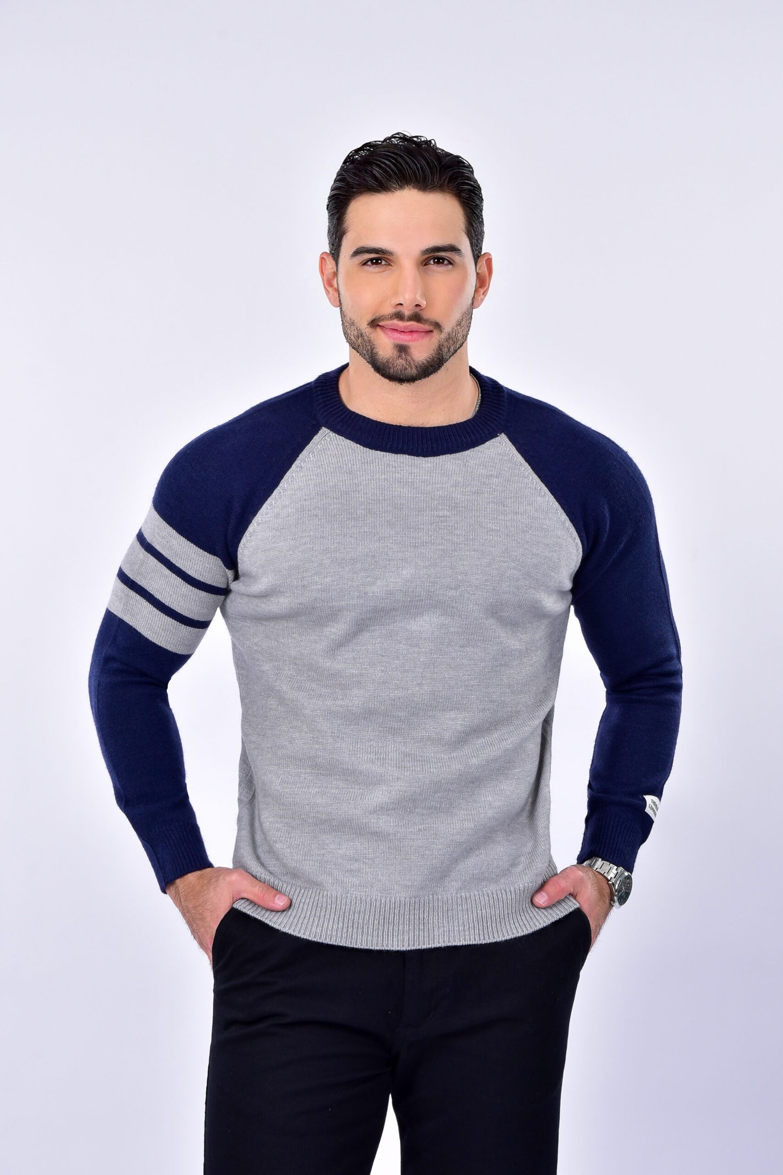 Contraste de tonos que rompe la rutina. Suéter bicolor con carácter urbano y moderno.